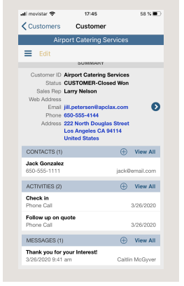 Equip sales with real-time access to prospect, customer, opportunity, and order records.